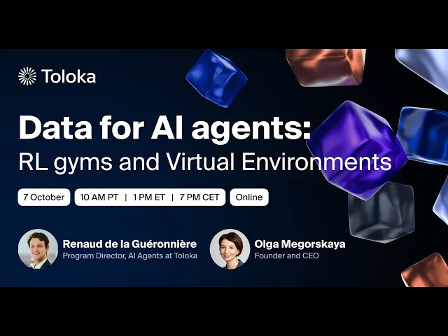Join Olga Megorskaya, CEO of Toloka, and Renaud de La Guéronnière, Program Director, AI Agents, as they discuss Toloka's pioneering approach to building bespoke evaluation platforms. They will unpack the strategy behind creating "virtual companies"—fully functional digital replicas of an organization's tools, data, and workflows.